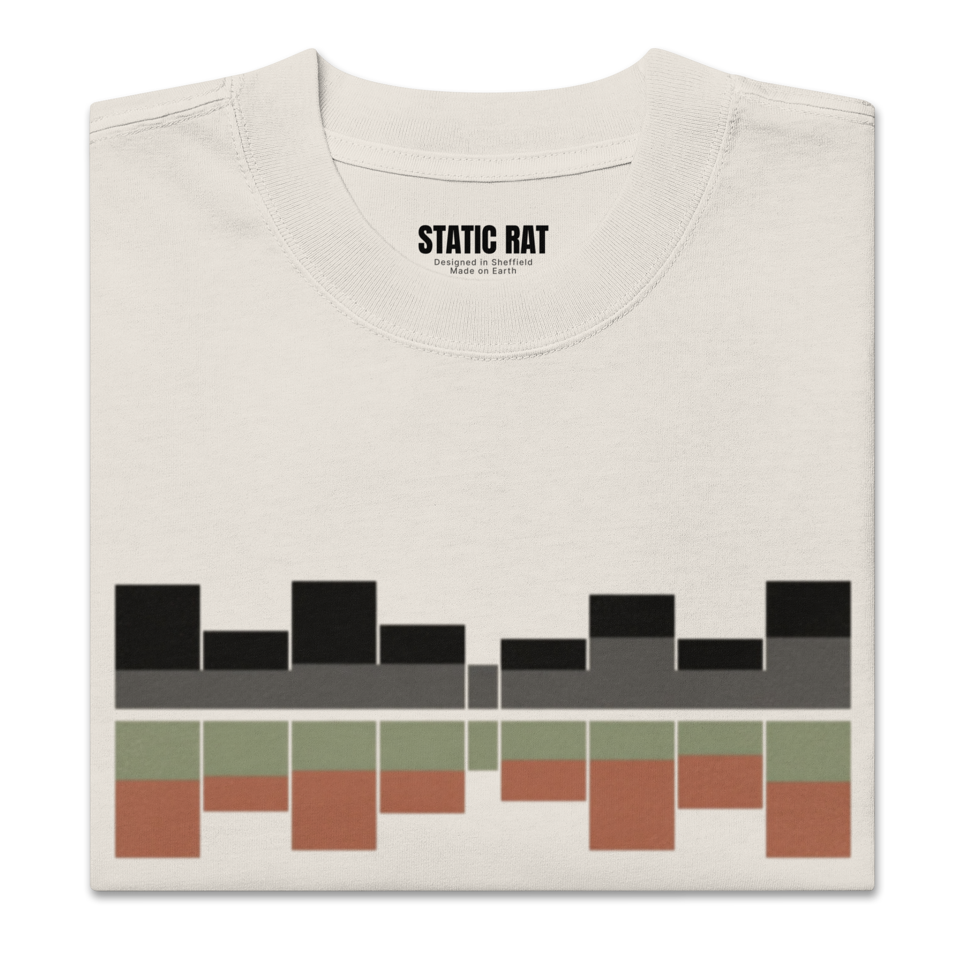 100% carded cotton. Fabric weight: 7. 1 oz. /yd. ² (240 g/m²). Garment-dyed, pre-shrunk fabric. Boxy, oversized fit. Dropped shoulders. Wide neck ribbing.